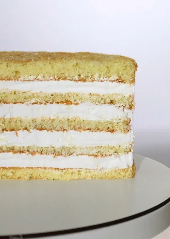 Бисквитные коржи, прослоенные кремом из растительных сливок